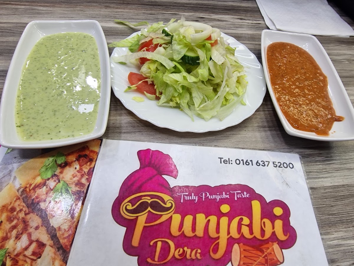 One of the standout dishes at Punjabi Dera is the Lamb Karahi. This aromatic curry, slow-cooked to perfection with tender lamb, is a favorite for many and truly represents the bold flavors of Punjabi cooking. The Chicken Briyani is another crowd-pleaser, offering a fragrant blend of spices and tender chicken served with fluffy rice that’s perfect for those craving something filling and comforting. If you're after a lighter option, the fresh Salad pairs wonderfully with any dish, balancing the rich flavors of the curry.