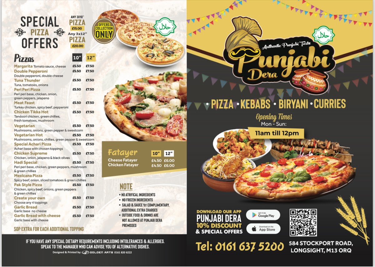 The BBQ section, featuring Chicken Tikka, Lamb Seekh Kebab With Naan, and Mixed Grill For 2, adds a smoky, indulgent touch, complemented by freshly baked naan options like Garlic Naan, Cheesy Naan, and Aloo Naan. Sides, sauces, desserts such as Kheer and Mango Lassi, and convenient Special Offer pizza deals neatly round off the experience. Overall, Punjabi Dera’s menu feels thoughtfully curated, generous in choice, and ideal for anyone craving authentic Punjabi cuisine alongside popular takeaway classics.